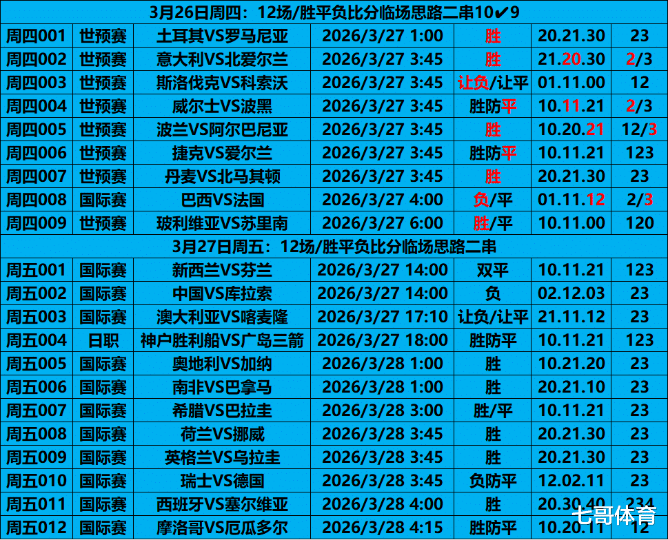 26赛事前瞻复盘10✔9其中2场还没结束就不做统计;内推稳健继续拿下,继续努力,给大家带来更精准的赛事思路,是我们的宗旨。没有思路的,最近状态不佳的朋友可以来看看,内推组合参考参考。