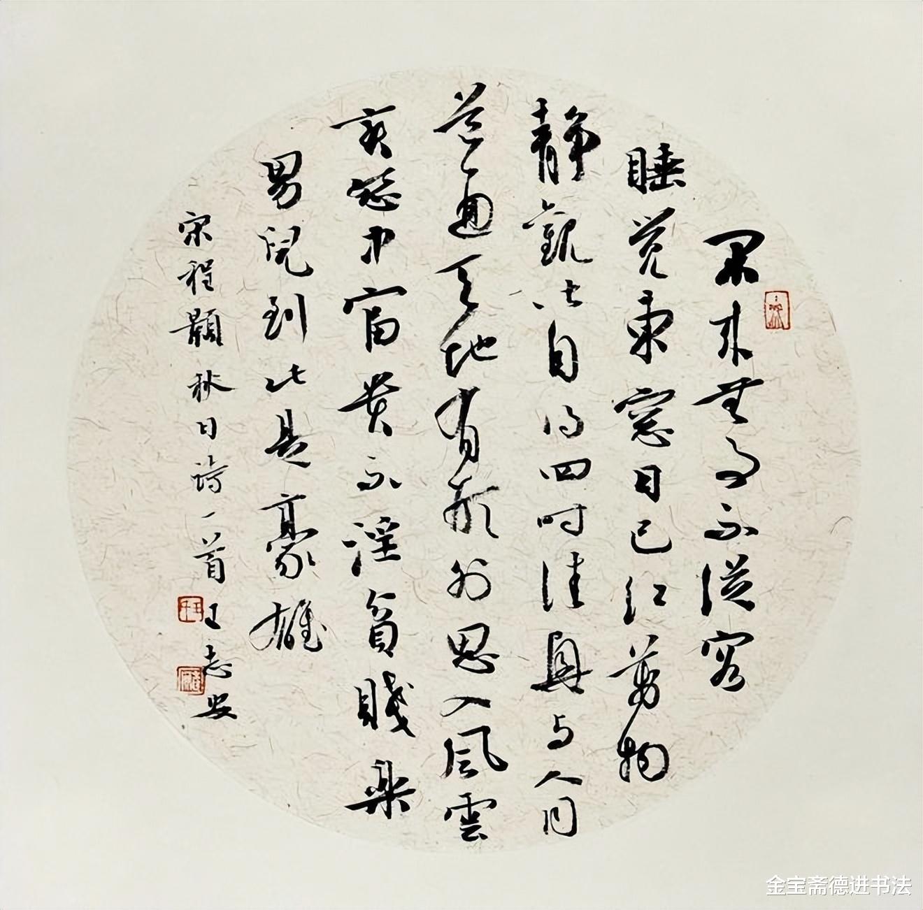 作品以禅宗语录为依托,将书法推向 “字中有笔,如禅家句中有眼” 的至高境界。看似随性的墨点,实为千锤百炼的精心排布,或凝重如坠石崩云,或轻盈似惊鸿掠水,疏密相生、节奏清朗,每一点皆为力之凝聚,以静制动,统领全篇。