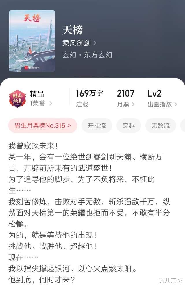 2、乘风御剑《天榜》完结大神乘风御剑又写完了一本作品。