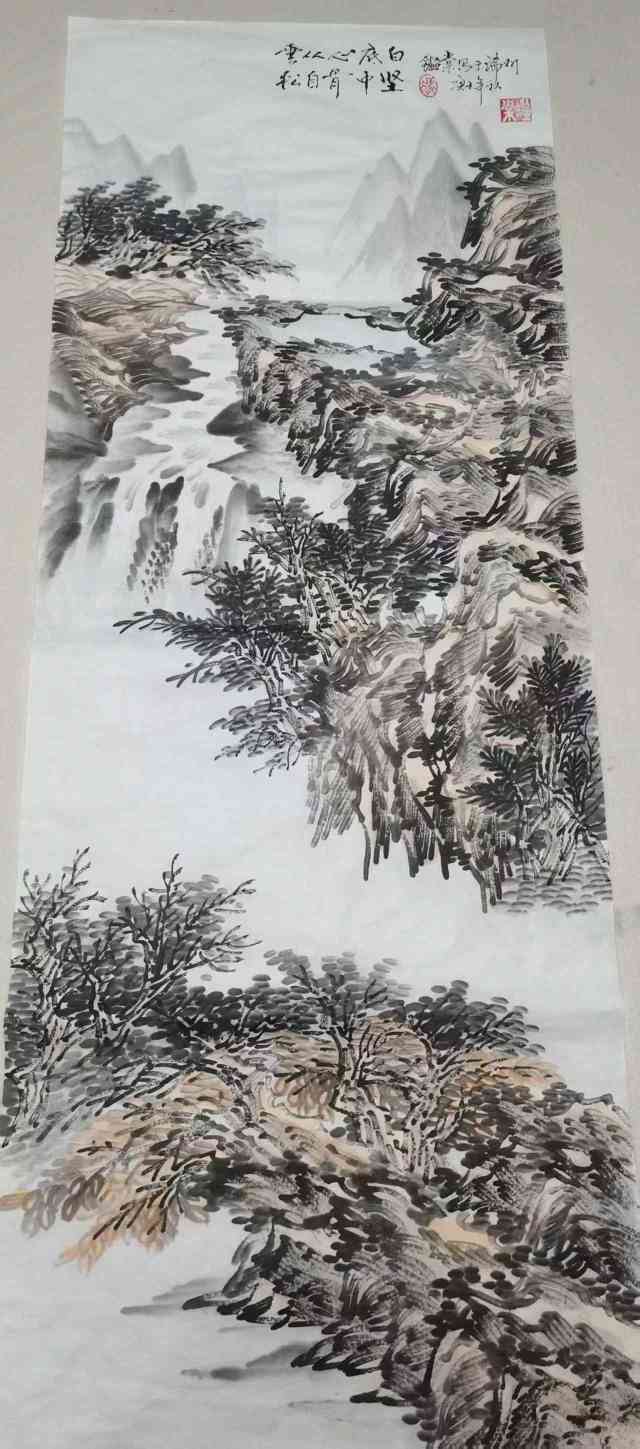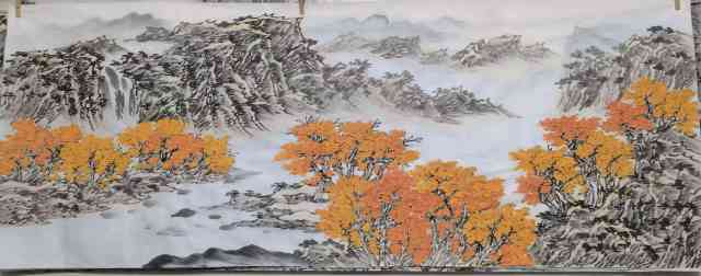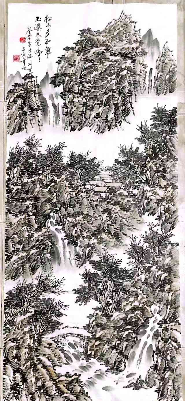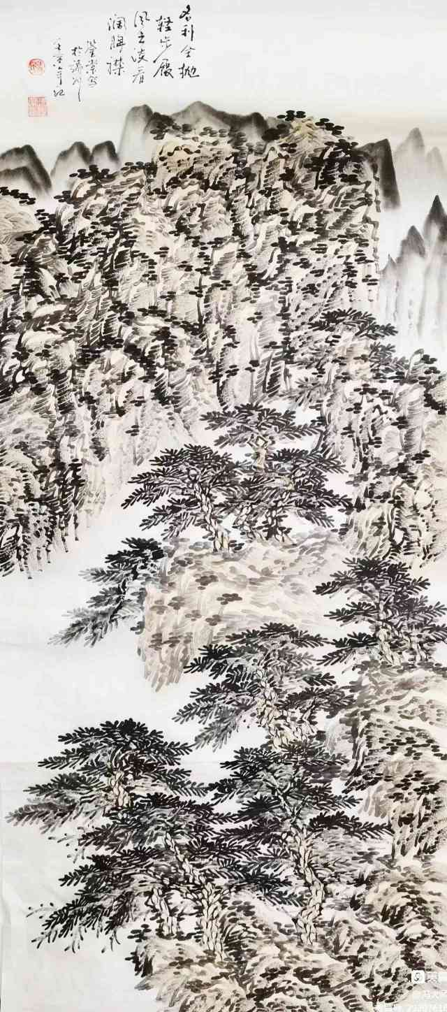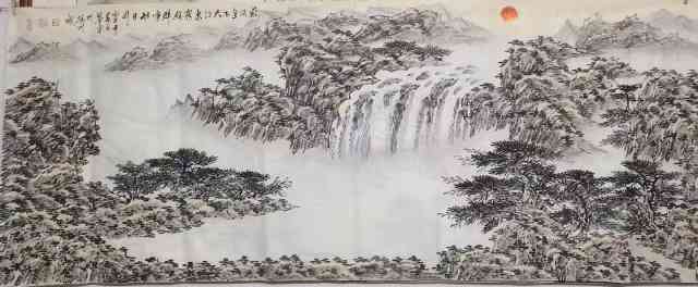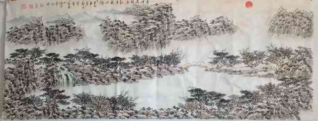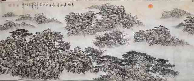 在构图方面,冯鉴棠打破了传统山水画的“三远法”局限,尝试将西方绘画的透视与构图融入其中。他常以俯视或仰视的视角表现山体,通过夸张的线条与色彩对比,强化画面的动感与张力。例如,在描绘肇庆鼎湖山时,他以倾斜的构图表现山势的险峻,以跳跃的墨点表现飞瀑的灵动,使作品既有古典的雅致,又不失现代的活力。