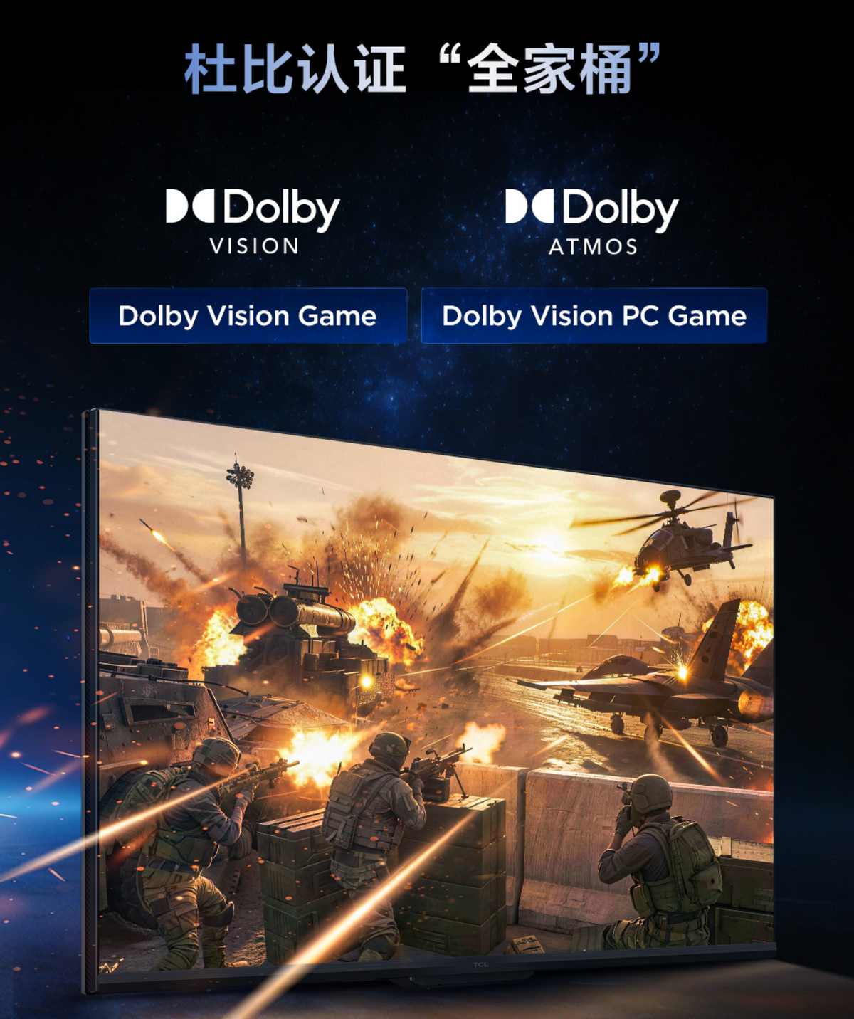 除了硬核的游戏体验,这款显示器的软实力也同样能打。不少人买了显示器想当电视用结果才发现压根不适配,而C3A Pro采用的TCL智娱系统可以做到“一屏三用”,配有遥控器即开即用,桌面级OS 流畅丝滑,主流视频平台全适配,不用开电脑就能追剧、玩主机,直接把显示器变成“桌面小电视”。顺带一提,它还是全球首款同时拿下HDR Vivid和Audio Vivid双认证的显示器,再加上杜比全家桶加持,游戏、电影统统拿捏。