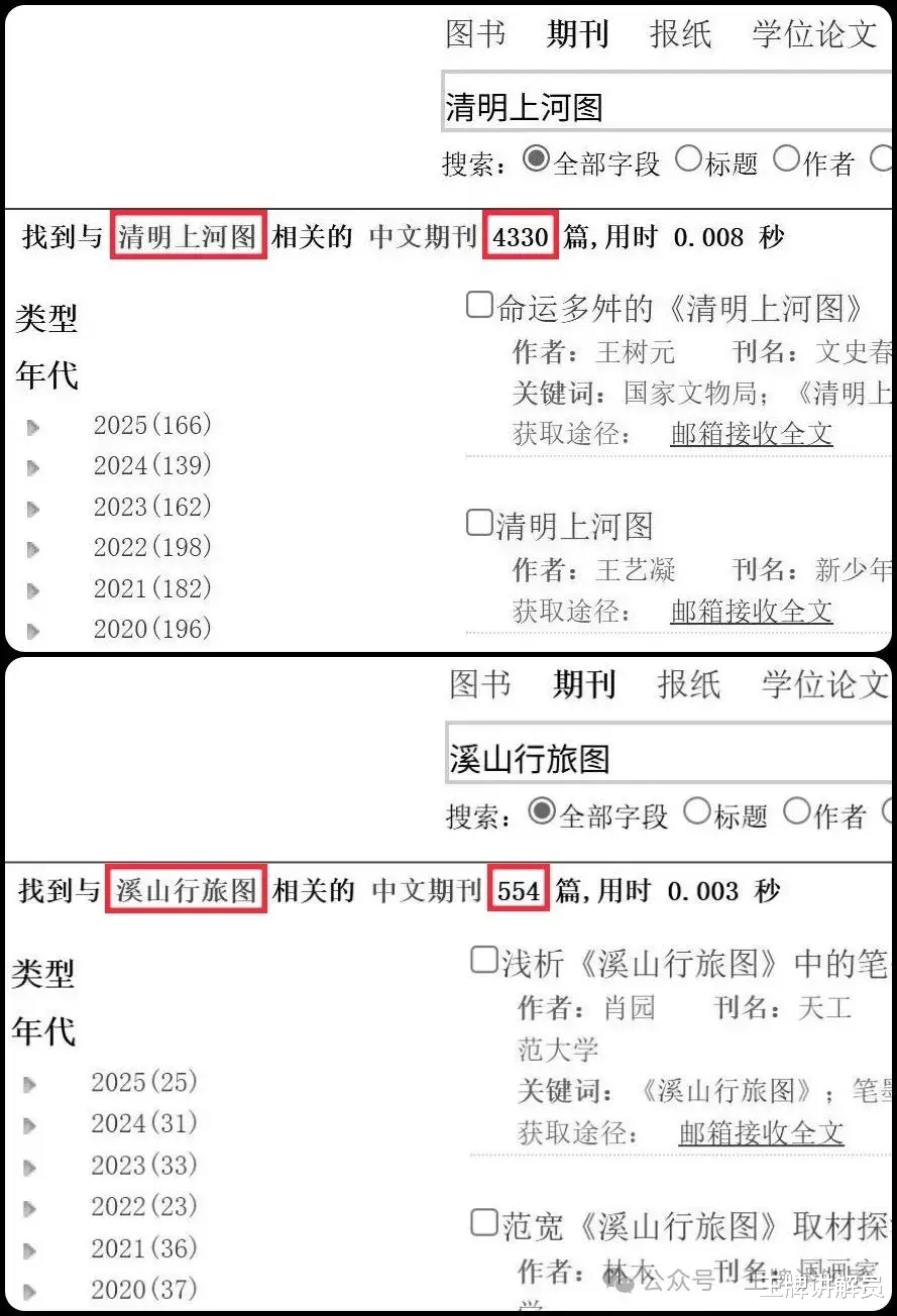 早在十多年前,就有文章统计说,与《清明上河图》相关的学术论文多达400余篇。时至今日,随便打开一个论文检索网站,你会发现,单单在标题或者概要里出现“清明上河图”这一词组的文章就数以千计!在正文中提到这幅画的文章更是不计其数!