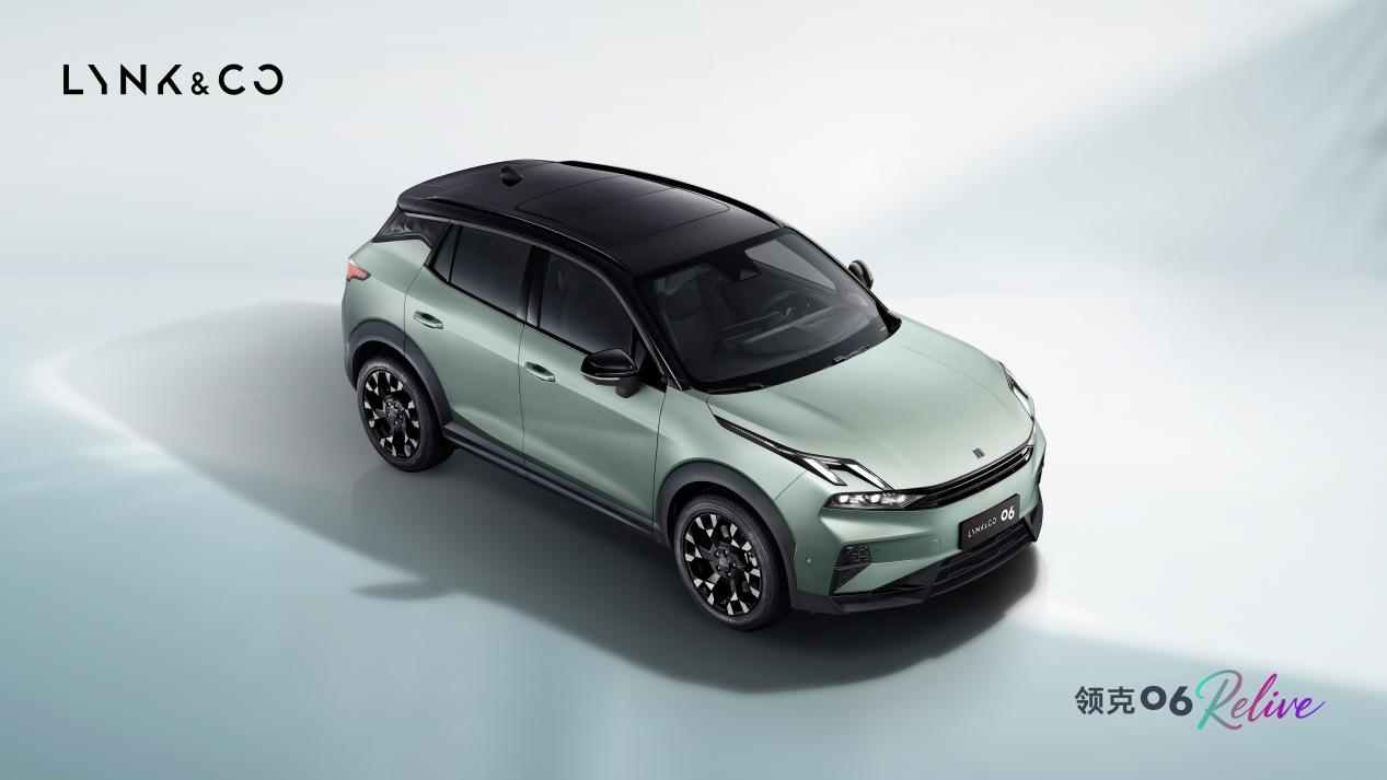 外观设计上,领克 06 Relive 延续了 06 系列的都市自然主义美学,采用二代设计语言,造型精致且具备高辨识度。前脸的分体式大灯布局是家族特色的重要体现,上方 “Y” 字型破晓之光日间行车灯点亮后视觉冲击力强,成为车辆的标志性设计;下方主灯组搭配黑色横幅式进气格栅,不仅拉宽了前脸的视觉宽度,还增添了运动气息,契合年轻用户对动感造型的偏好。车身侧面,“Z” 字形腰线勾勒出灵动的轮廓,悬浮式车顶设计提升了车辆的优雅感,熏黑车顶形成的双色车身符合当下的流行趋势。车色选择丰富多样,除了 shero 紫、落樱粉等经典颜色外,新增的森野绿车色以苔藓与琥珀为设计灵感,融合了自然质感与高级工艺,搭配黑色车顶后,运动与时尚属性更为突出。无论用户偏爱甜美、沉稳还是独特的风格,都能找到适配的车色,让车辆成为展现个人风格的移动名片。