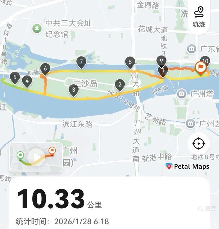 起始并终结于海心沙的闭环轨迹,10公里不算长,但是联想的触角很远。