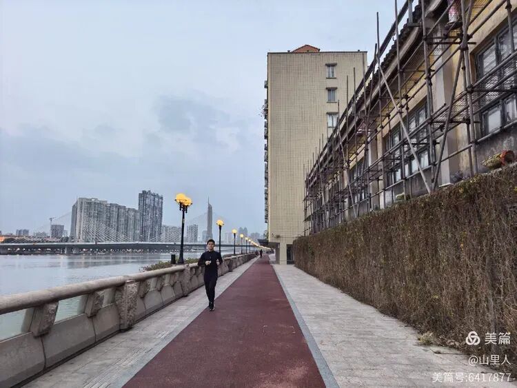 眼前这段长约1公里的漫步道,几年前或许尚未开放。右手边的建筑紧邻江岸,但硬是辟出了这片空间,让地于行人,让道于游客。其理念与上海苏州河华东政法大学段的滨水步道如出一辙,都是城市更新、还江于民的新举措。二沙岛西端这约1000米的碧道,与苏州河华政段的971米,堪称殊途同归,隔空呼应。