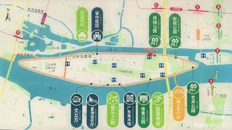 眼见为实,践行需要机缘。广州珠江最著名的江中岛,地图上索引类似东西走向的棒槌型。它的西部分是二沙岛,东部分是海心沙。
