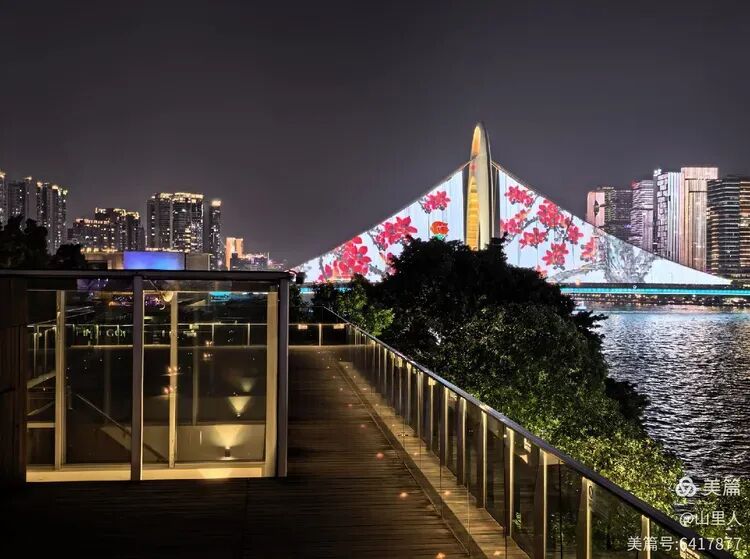 酒店大堂楼的西面,则是珠江,猎德大桥,斜拉索光栅……