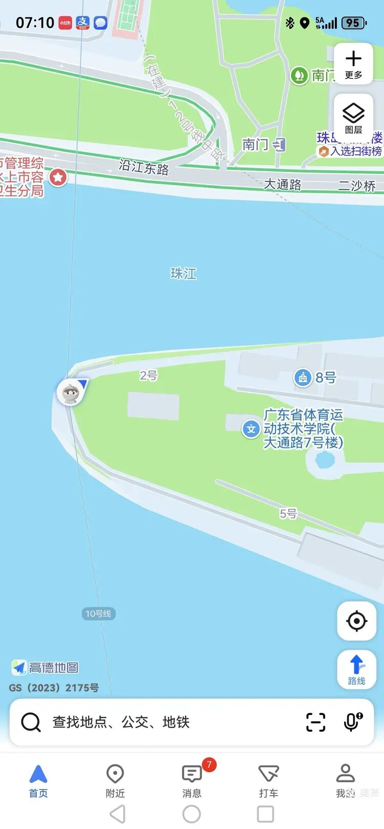 回撤1公里,然后再由北切入岛内,绕道沿着广州体育局一侧马路再贴近二沙岛的北侧,重新开启沿江步行,这里的景致又豁然开朗。