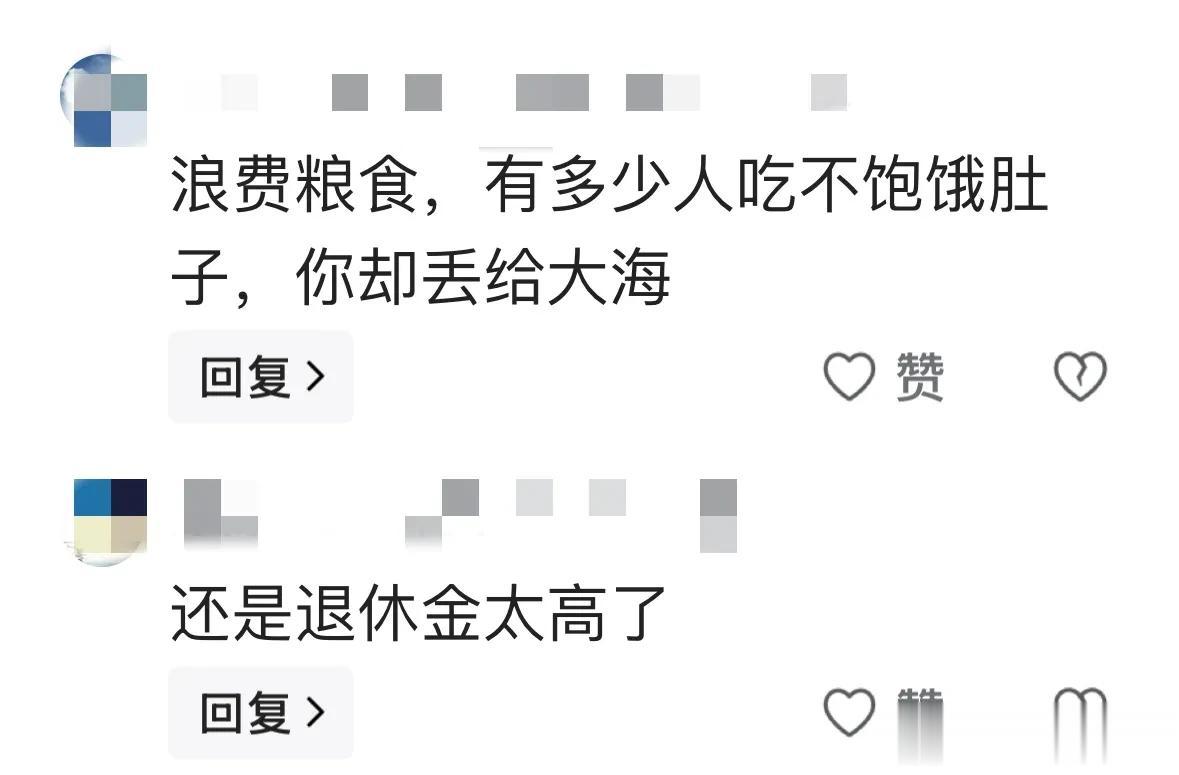 也有网友说,这些老人一定是中了什么邪了,拿粮食放生,他们要遭天谴的,