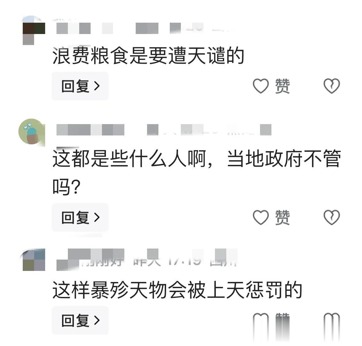 有网友说,这可是大米呀,是农民朋友们面朝黄土背朝天,一粒一粒种出来的呀,他们怎么可以这样随意糟蹋粮食?