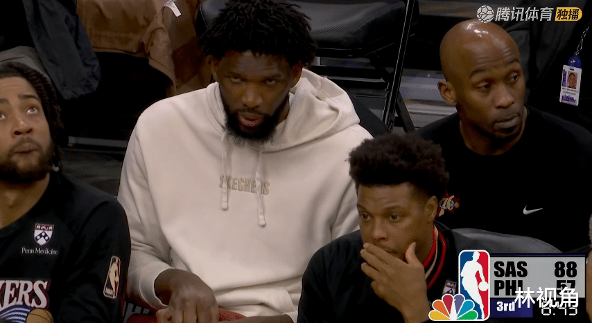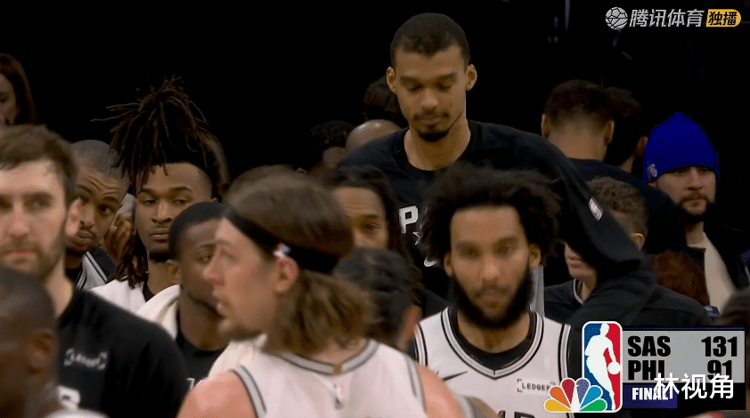 第三节开始,马刺一波18-4的攻击波,分差瞬间来到30分以上,冲着40分去了,场边观战的恩比德脸色有些难看。