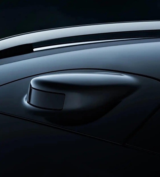 新车侧面充电口位于右前翼子板,采用传统的门把手样式,前后翼子板造型突出,形成宽体视觉效果。车尾设计较为简洁,采用分段式的贯穿式尾灯设计,尾灯隐藏于后车窗内,上部的后扰流板提供高位制动灯。车身尺寸方面,新车的长宽高分别为4471mm*1833(1844)mm*1641mm,轴距为2720mm。