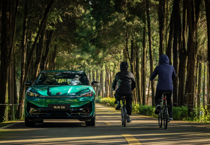 与众06与自行车堪称出行的“黄金搭子”。2766mm的长轴距与4664×1860×1610mm的车身尺寸,营造了宽敞舒适的驾乘空间。高达535L的后备厢容积,更是能轻松容纳多辆折叠自行车以及近郊露营的装备,为时刻从容出发提供了坚实的保障。