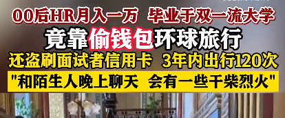 2025年4月,李先生在面试完后发现自己的银行卡被盗刷5000元,调查后发现,种种证据都指向面试他的00后HR身上,而他作案的目的,竟是为了满足自己疯狂的旅行欲望和私生活!