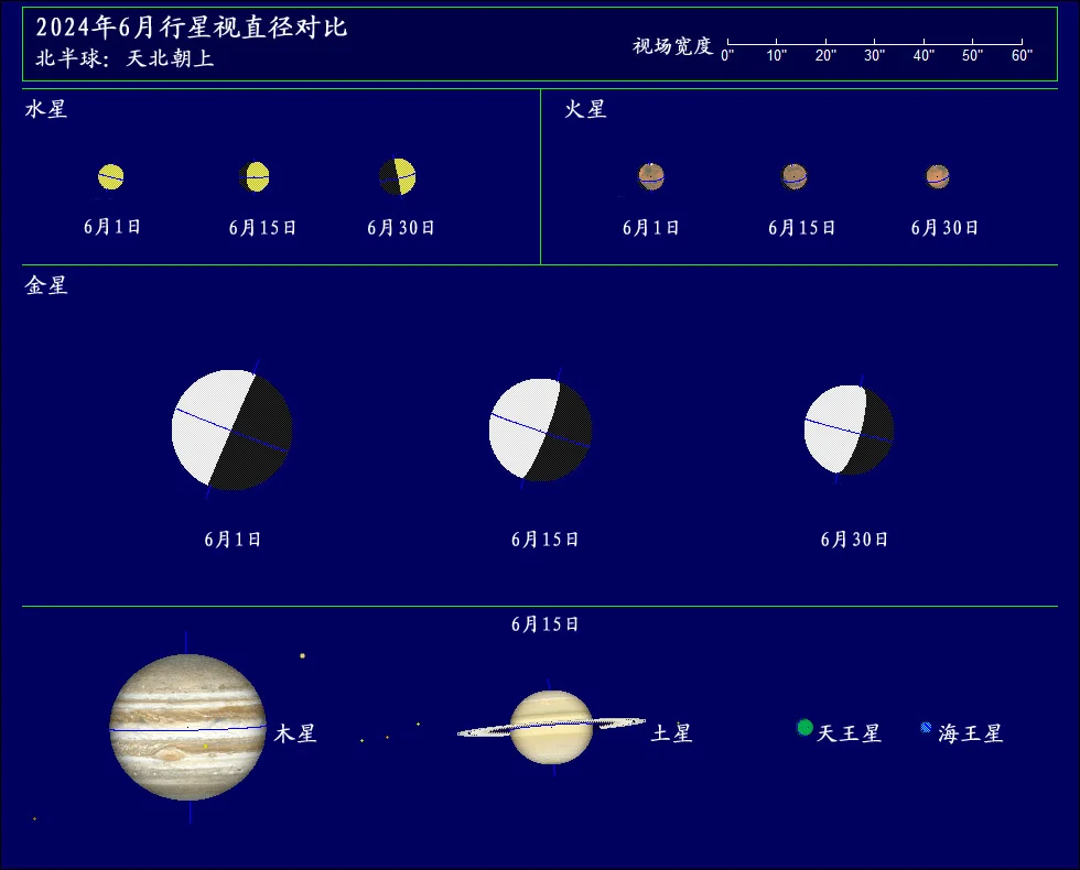 2025年6月1日11:29金星西大距(距角45.85度,视星等-4.41等,视直径23.89”),位于双鱼座旁,日出前可见于东方附近天空。6月1日这一天凌晨,东边天空闪耀的“启明星”金星距离太阳最远,为西大距(西方最大离角)。这一季的金星从4月中旬左右到10月中旬左右可以在凌晨的天空看到。