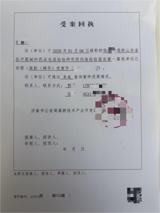 张先生明确指出:检验研究院出具的报告存在多个版本且关键信息不一致,其真实性与严谨性令人质疑,且未按规定通报外省企业违规信息;山东省药品监督管理单位信访单位回复引用法规错误、扭曲事实;淄川区市监单位经办人涉嫌失职渎职,使用无效报告处罚且未移送犯罪线索。但是目前济南舜华路派出所对明确证据己受案。同时,他提交报案材料,请求侦查“一报告多版本”是否涉及伪造国家机关公文,并说明未理赔的核心原因是行政处罚依据虚假、程序不合规。