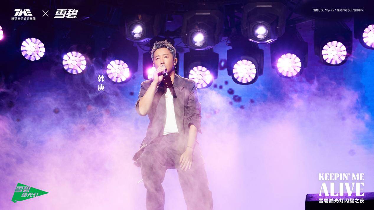 作为今夏带给亿万乐迷的惊喜之一,TME联合「雪碧」将酷爽延伸至下线,打造Keepin' Me Alive TME×雪碧酷光灯闪耀之夜,7位音乐人巅峰聚首,带来7首品牌单曲的线下舞台:韩庚一曲《从不后悔》在复古曲调中震撼开场,怀旧风情之下牵动乐迷们的青春回忆;