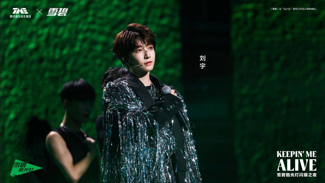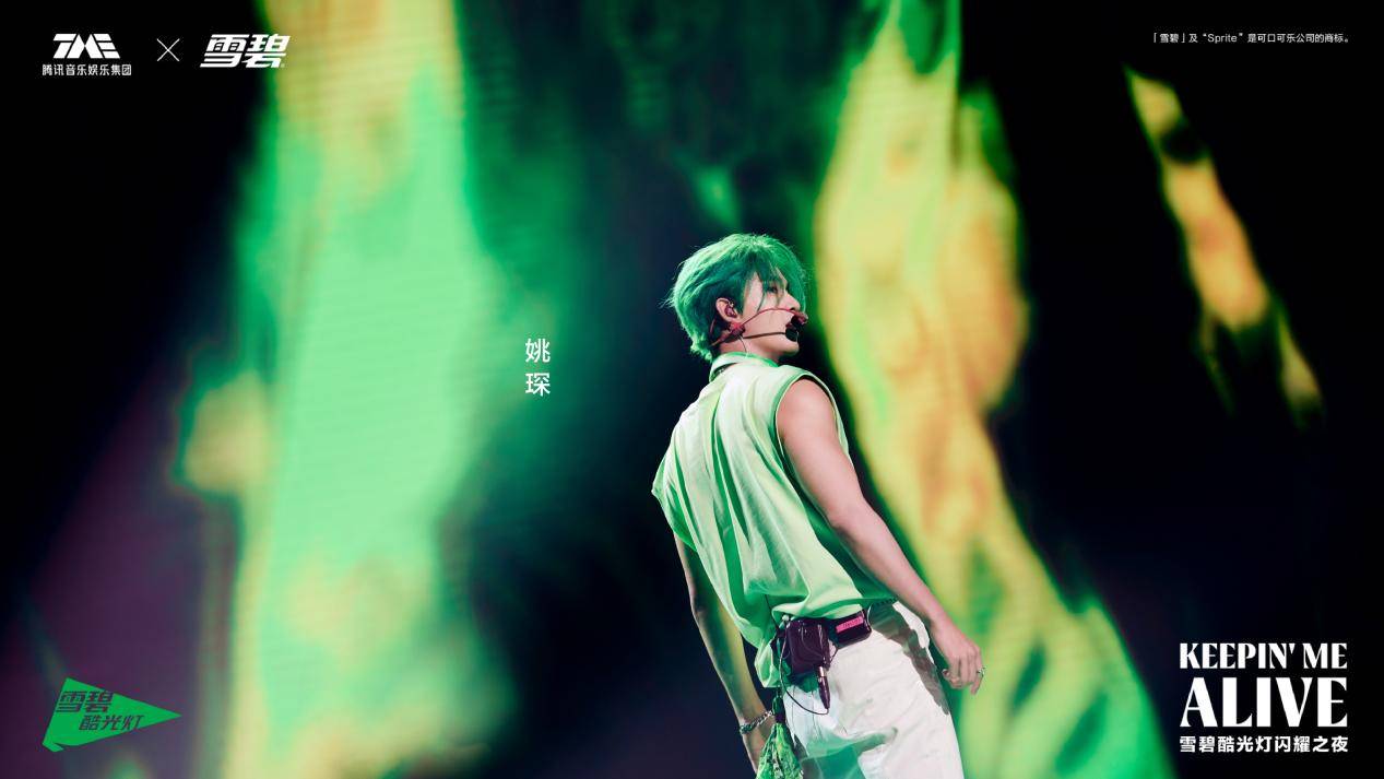 8月5日,由腾讯音乐娱乐集团(TME)和「雪碧」共同打造,Billboard China联合出品的Keepin' Me Alive TME×雪碧酷光灯闪耀之夜在上海举行。当晚,张靓颖、刘宇、袁娅维、李汶翰、陈粒、姚琛、韩庚(按专辑发歌顺序排列)7位横跨多元曲风的华语顶级音乐人酷爽开唱,把首张《雪碧酷光灯 华语专辑》7首作品从线上延续到线下舞台,彰显7种特立独行的音乐态度。