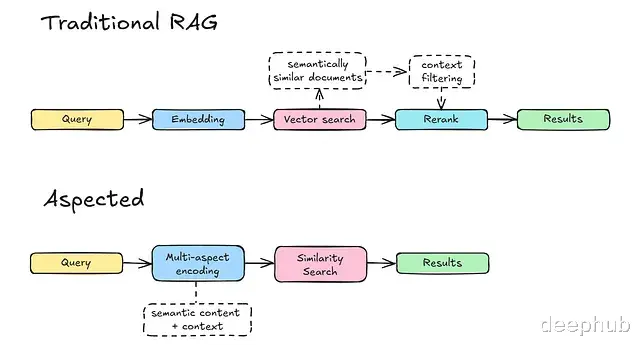 Aspect Database 正是基于这一思路构建的检索引擎,文档不再只有一个文本派生的 Embedding,而是通过多个向量化的 Aspect(即上下文属性)来表示,相似性搜索可在内容维度与上下文维度上一并进行。