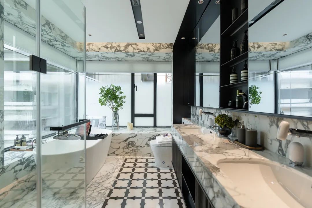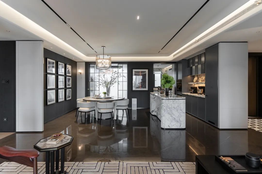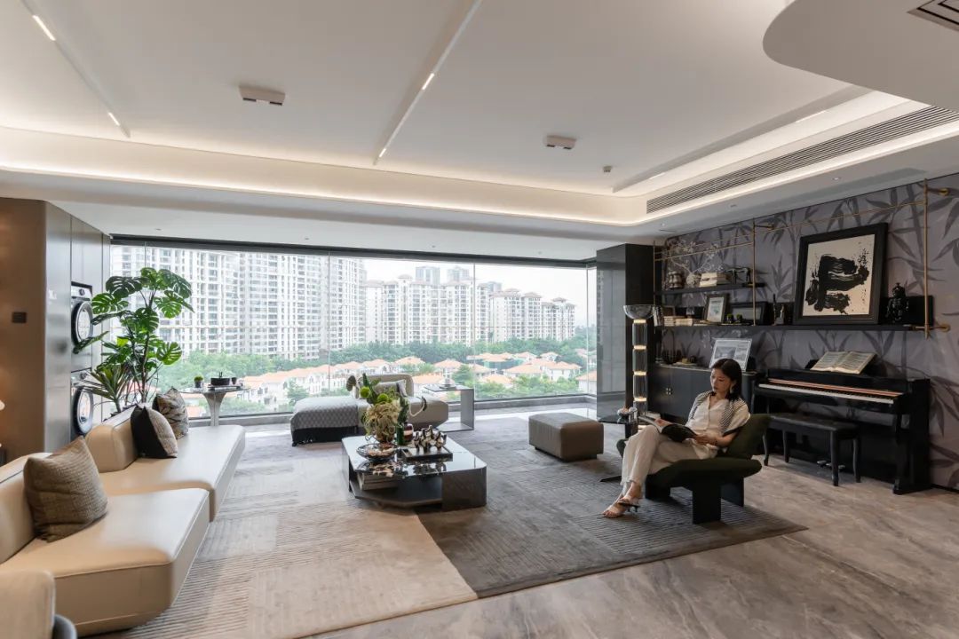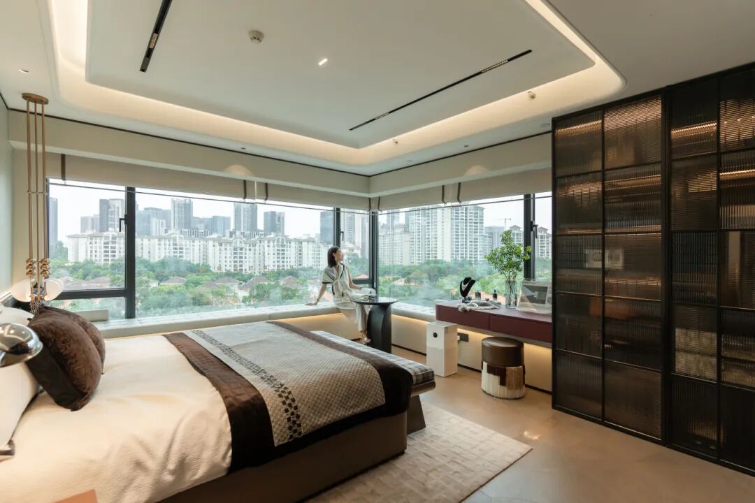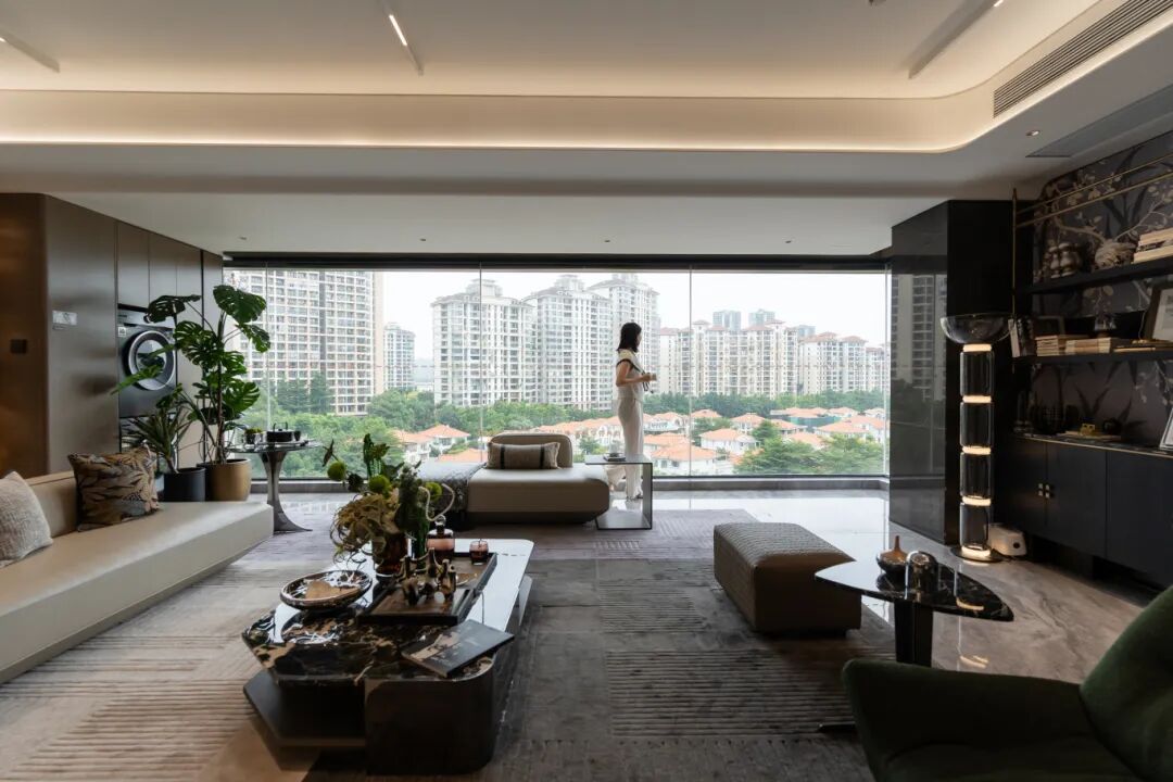 而且从落地窗往外看,整洁的别墅景观错落排布,环绕视野,这大概就是下楼即度假的生活方式吧。