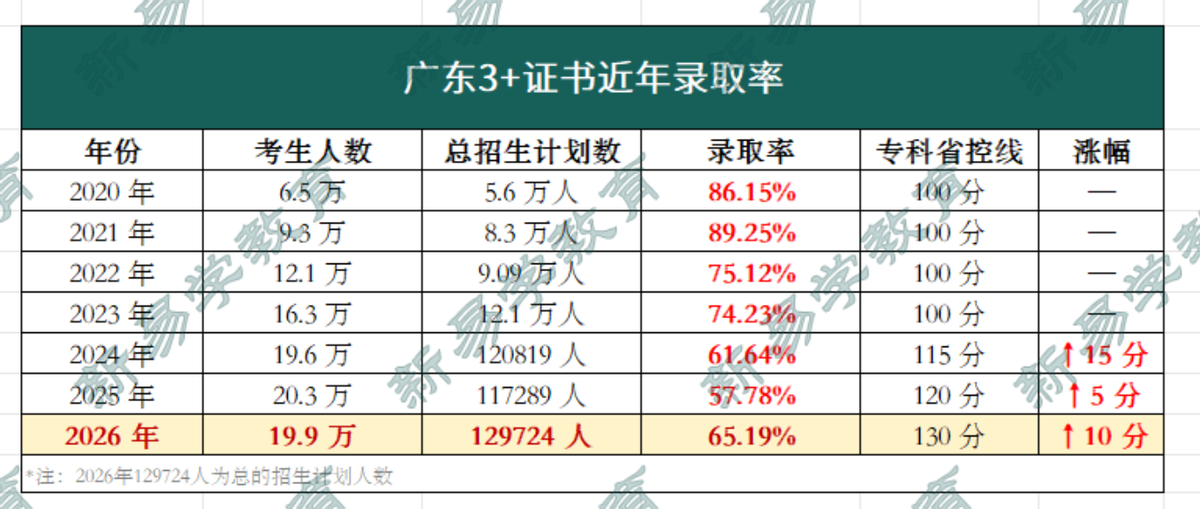 2026年广东3+证书高职高考延续了近年来的火热态势,尽管招生计划有所扩招,但庞大的考生基数让升学竞争丝毫不减。