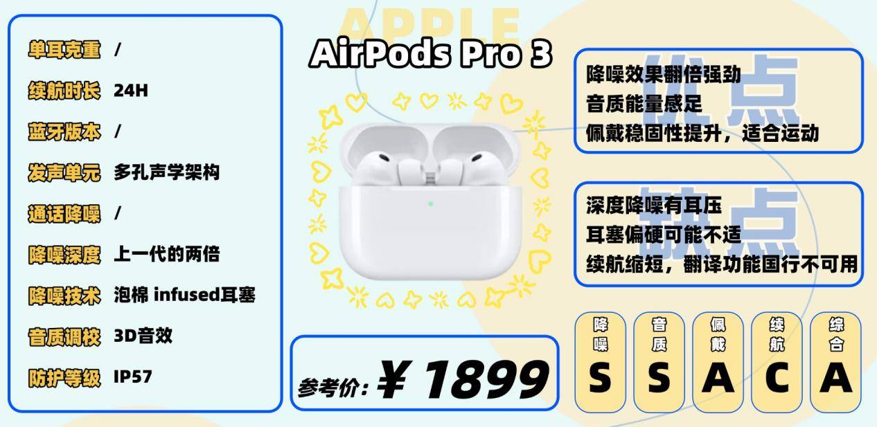 AirPods Pro支持基于Apple Intelligence的实时翻译功能,延迟低、体验流畅,但目前国行iPhone暂不支持简体中文,需要等待后续更新。续航方面,单次使用约8小时,充电盒总续航为24小时,比前代略有下降,但日常通勤和外出基本够用。