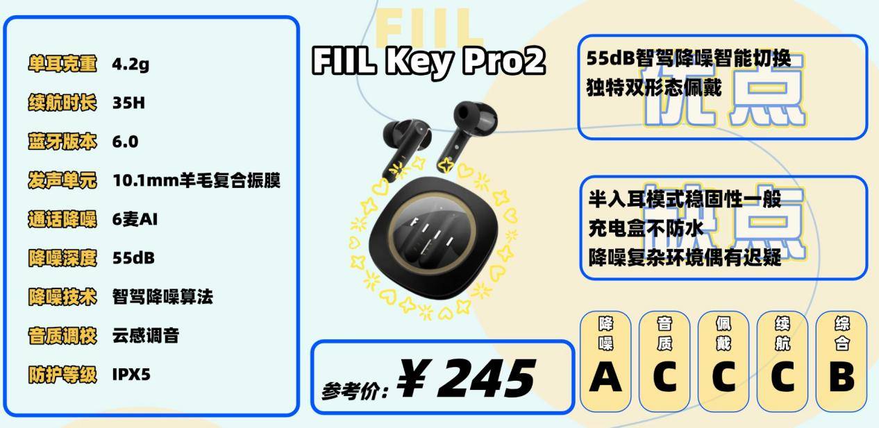 佩戴体验是Key Pro2的一大特色。它附带XS号耳帽,可以在入耳式和半入耳式之间切换。入耳式模式降噪更强,半入耳模式则佩戴更轻松,还加入了“云感调音”来补偿音质损失。这种设计挺有新意,不过在运动时,半入耳佩戴的稳固性稍逊一筹。