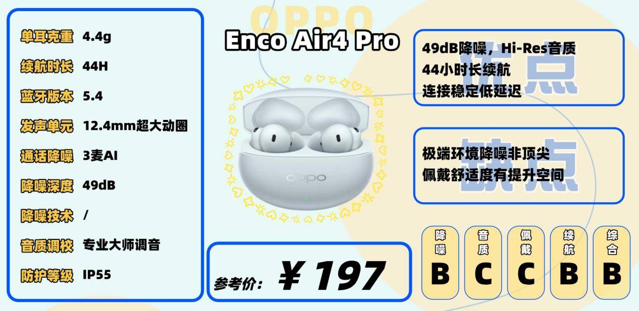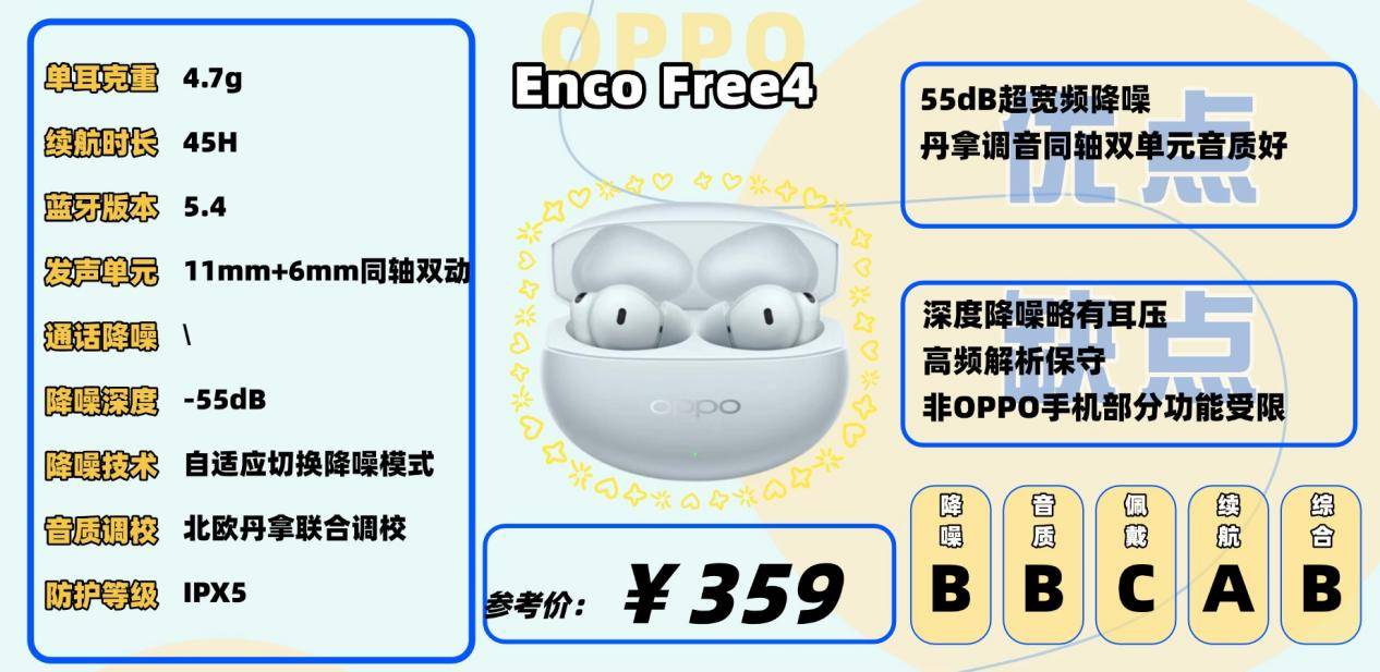 续航方面表现出色,总续航最长可达45小时,支持快充;IP55防尘防水等级也能应对户外使用。它还具备AI实时翻译和47ms低延迟游戏模式,功能丰富。不过部分智能特性需要配合OPPO手机使用,非OPPO用户能体验到的功能会稍微少一些。