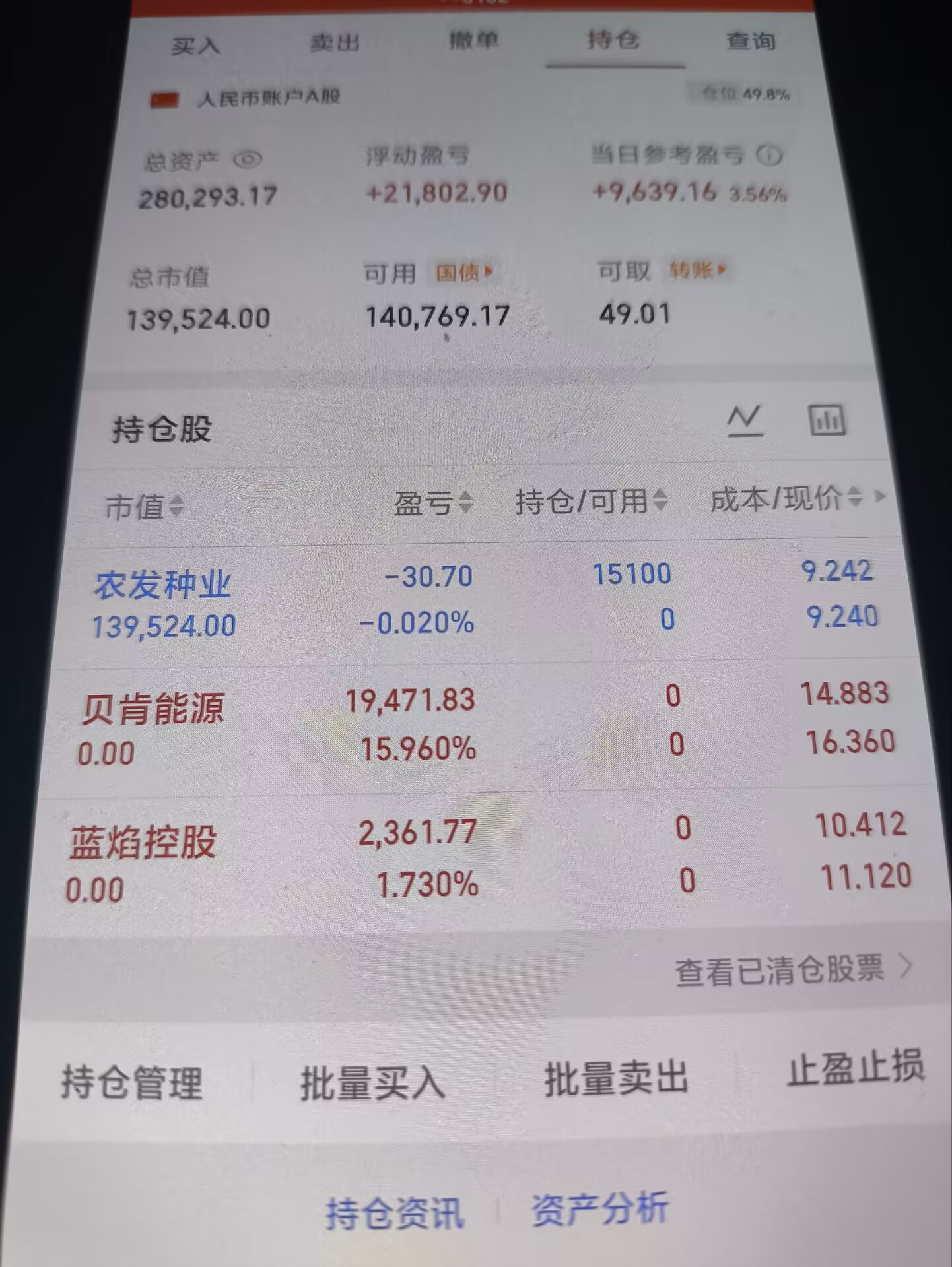 贝肯能源,开在9个点,5个多点出掉的。