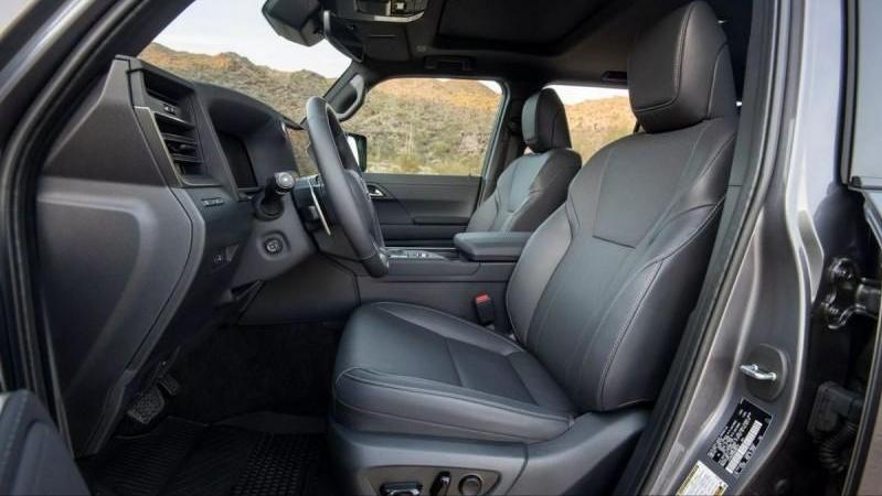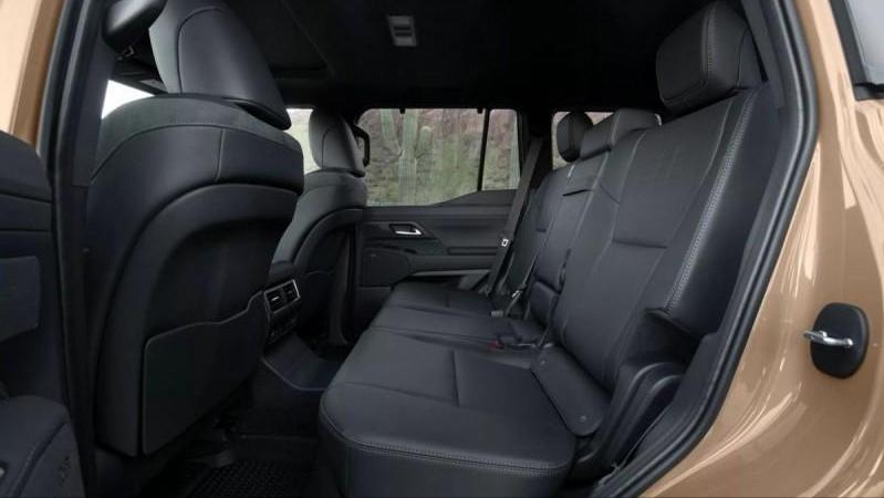 走进车内,2025款美规版雷克萨斯GX车型内饰同样采用大量方正平直的线条设计,全系标配NuLuxe 材质包覆座椅,并且拥有前排电动加热、通风等功能;同时,中控台上配备12.3英寸液晶仪表,搭载14 英寸多媒体触控屏幕,拥有无线Apple CarPlay 和Android Auto 手机连接功能;除此之外,新车还标配10个扬声器音响系统,同时还拥有半苯胺材质真皮座椅、电动折叠第三排座椅、加热皮质方向盘、21个扬声器Mark Levinson 音响系统以及HUD抬头显示等进行选配。
