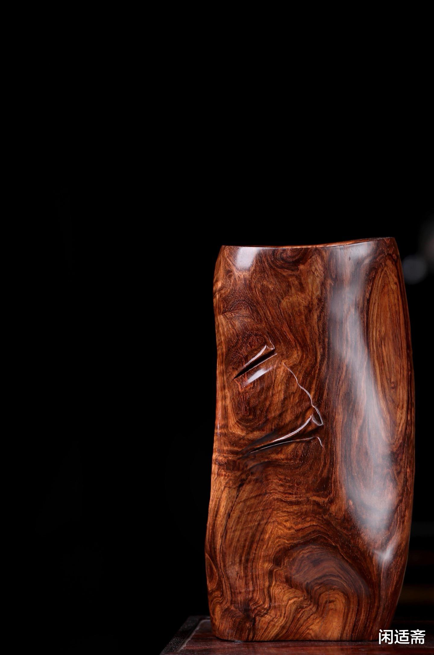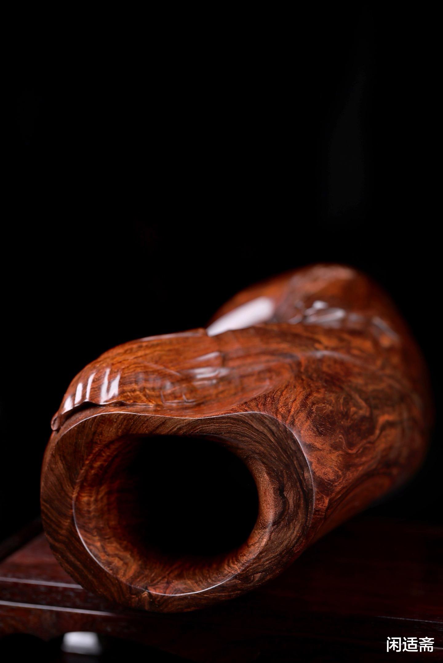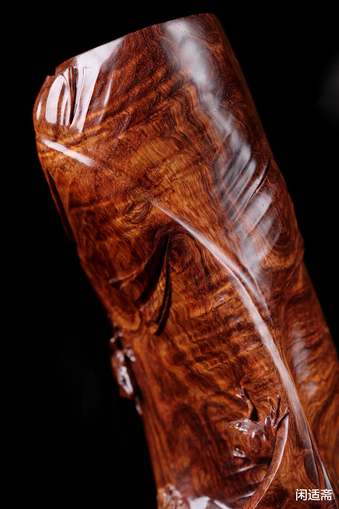 整件作品口径合宜,内壁光滑,收纳毛笔正合适;降香黄檀的温润香气萦绕书斋,提笔时提神醒脑,读书时沁人心脾。如今海黄珍品难寻,这般集稀缺材质、顶级纹理、名师工艺于一体的笔筒,早已不是普通文房器,而是能连接自然造化与文人情怀的传世之物 —— 置于案头,可观木之美、赏雕之妙;藏于柜中,是资产,更是文化传承。
