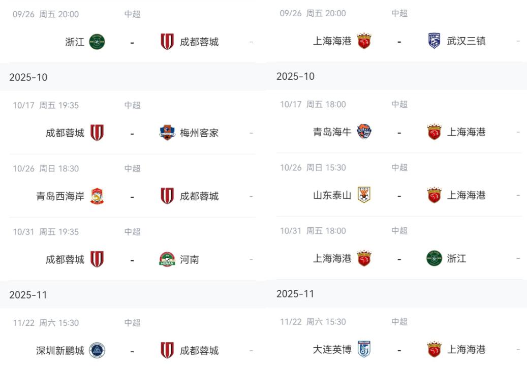 成都蓉城接下来将先后对阵浙江、梅州客家、青岛西海岸、河南队和深圳新鹏城。表面看对手实力平平,实则暗藏杀机:浙江队近期状态回升,河南队更是蓉城“克星”,本赛季足协杯刚淘汰过他们。更棘手的是,蓉城本赛季多次在弱队身上丢分,这对争冠来说是致命隐患。