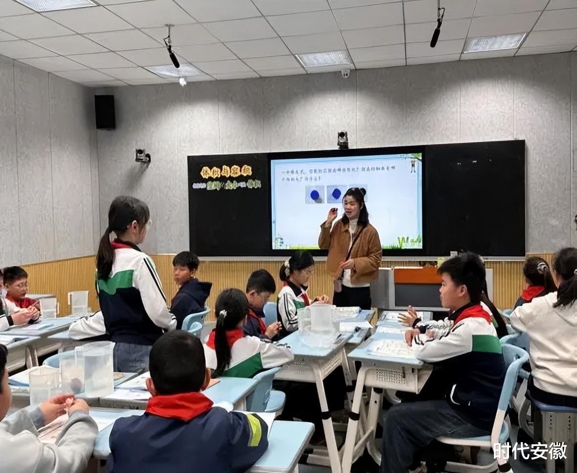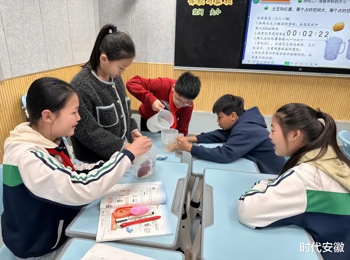 课堂上,谢老师以“橡皮泥捏形”“土豆红薯比大小”等探究任务为抓手,让学生在量杯实验中直观感受物体所占空间的大小,将抽象的空间概念转化为可操作、可感知的实践活动,充分调动学生学习积极性,有效培养学生的空间观念与抽象思维。