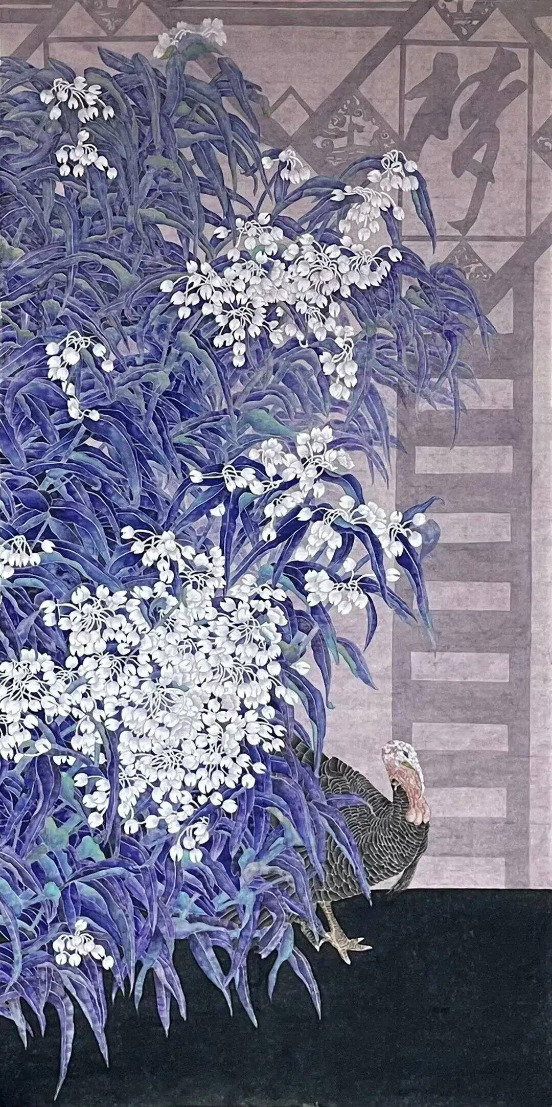 当岭南的芭蕉与现代电网在宣纸上相遇,当牡丹的雍容与几何纹样在色墨间共生,牛莉莉的工笔花鸟正以一种“旧瓶新酒”的姿态,重构着传统花鸟画的当代性表达。她的作品承续了宋代院体“格物致知”的精工,在“立象以尽意”的传统画论框架中,生长出属于这个时代的审美枝蔓。