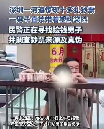 很快,深圳公安局宝安分局新乐派出所的工作人员就回应了,说已经接到报警,民警们正在火急火燎地寻找那个捡钱的男子,同时也在调查这些钞票的来源和真伪,具体的还要看后续调查结果。