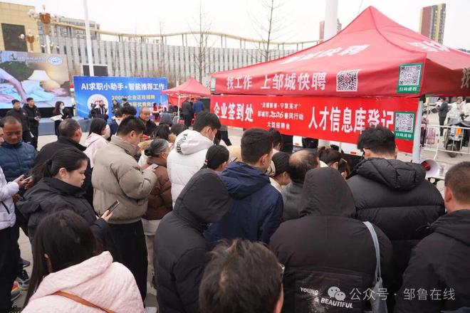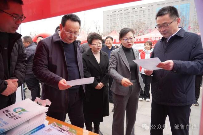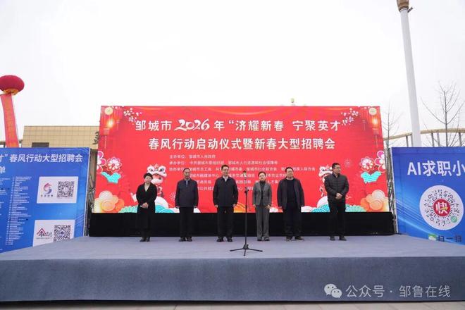 2月23日,邹城市2026年“济耀新春 宁聚英才”春风行动启动仪式暨新春大型招聘会在孟子大剧院广场成功举办。市委常委、组织部部长张新安,市委常委、市政府副市长刘君妮出席活动,市委组织部、市人社局等市直有关部门、各镇(街)负责同志参加。