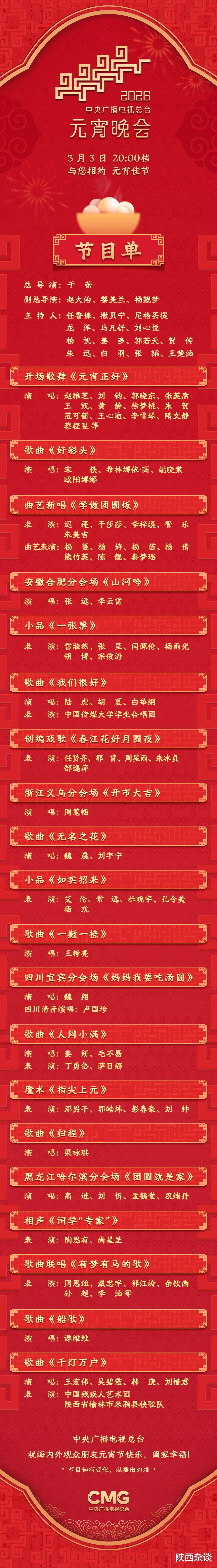 节目单来了!中央广播电视总台《2026年元宵晚会》今晚播出
