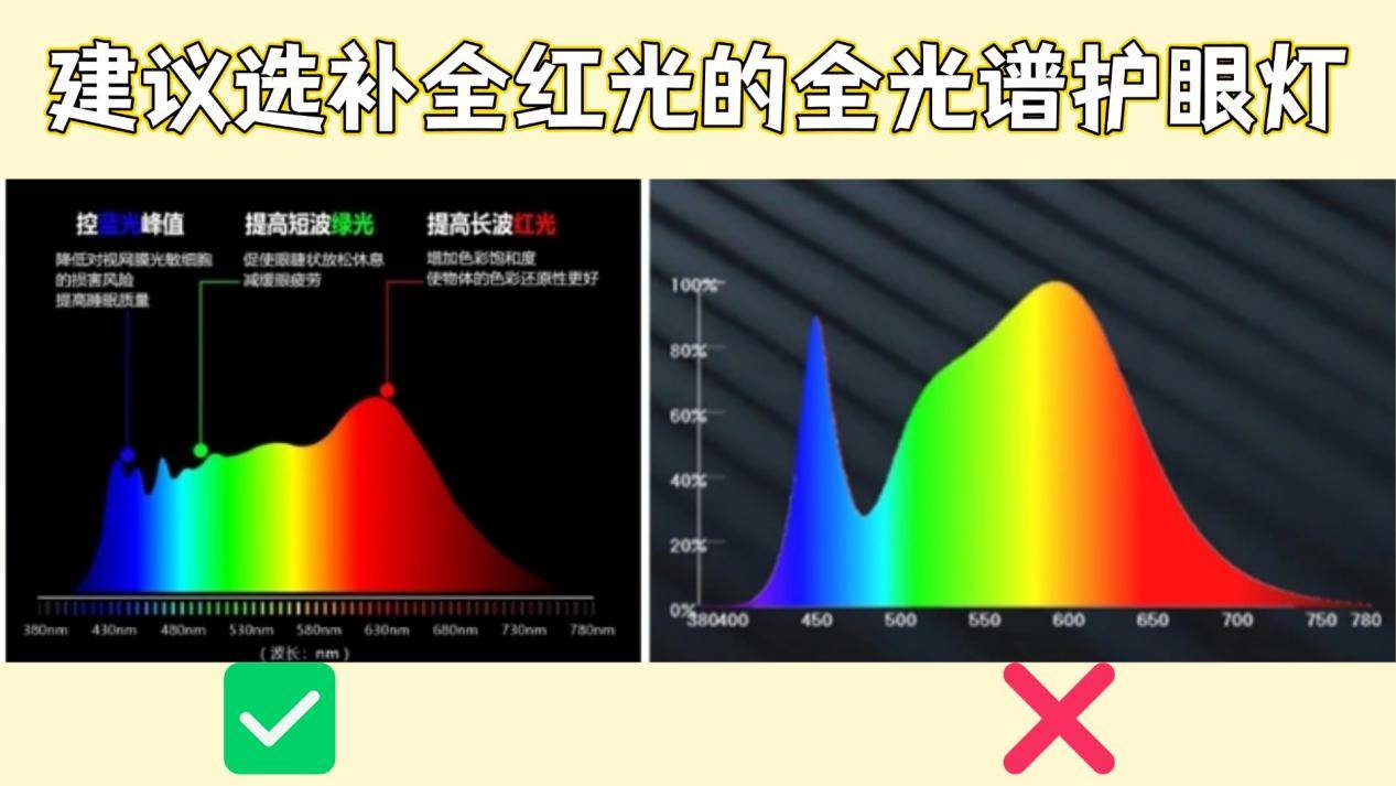市面上很多护眼大路灯都宣传全光谱,但整体的光谱连续性可能不高,同时还存在波段欠缺的问题,导致出现光线还原度低、造成视觉疲劳等问题,所以建议选择补全红光的全光谱护眼灯,这是因为: