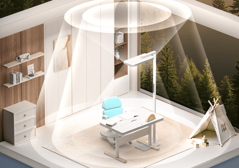 建议选择上光通量大于下光通量的护眼灯,同时具备合理的光通量能够保证桌面和环境亮度平衡的同时减少明暗反差带来的视觉压力,整体的照明均匀度也会得到很大的提升。