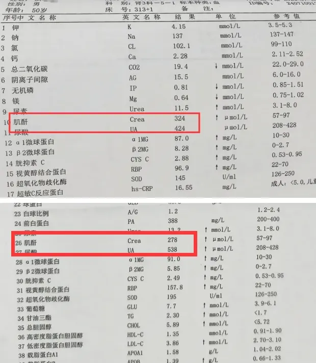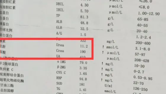 在当地辗转去了几个医院治疗,但肌酐始终没有降下来多少,担心加重来过来进一步治疗。