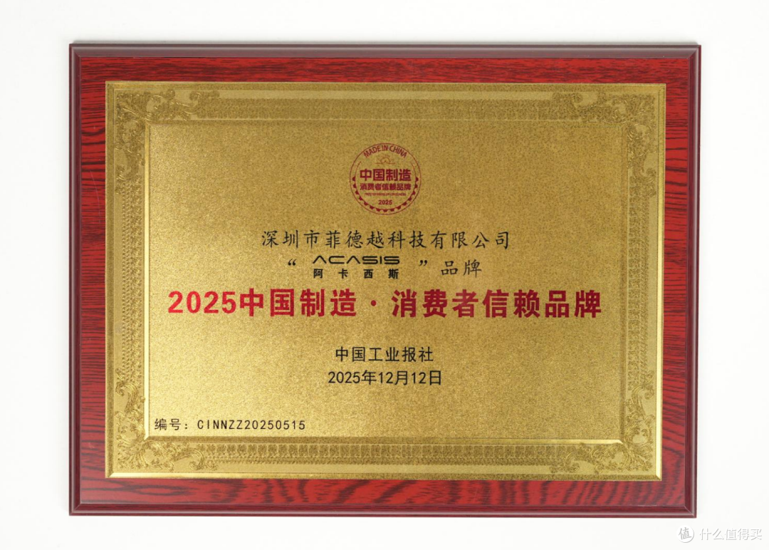 2025年12月26日,深圳 —— 深圳菲德越科技旗下品牌“ACASIS阿卡西斯”凭借在数码存储与高速传输领域的领先实力与广泛市场认可,入选“2025中国制造·消费者信赖品牌”,成为该年度推介活动中备受关注的品牌之一。