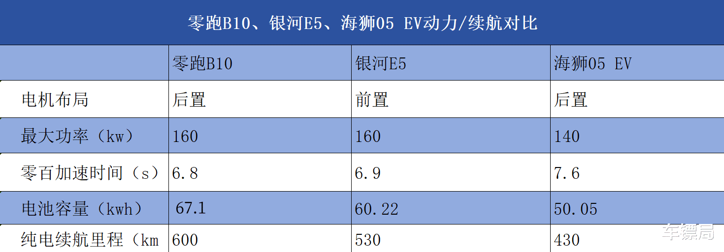 有一说一,对于购买10万左右的纯电车用户来说,续航和动力肯定是比较重要的。高续航,可以提升我们的出行半径,也可以更省钱。零跑B10的续航表现给力,纯电续航达到了600km,银河E5纯电续航是530km,海狮05 EV纯电续航是430km,这意味着同样满电的情况下在市区出行,零跑B10每周可以减少1-2次充电次数,如果是跨城出行,多出的100公里续航也可以让我们更安心。银河E5 530k续航在同级别中也算是比较优秀了,单程 300km内长途,中途补能一次就够。而海狮05 EV虽然相比两者有些劣势,但是430km续航日常通勤使用也足够了。