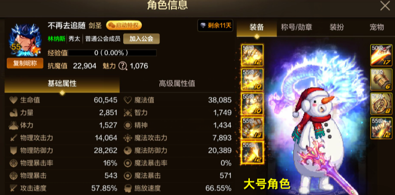 站街才2.2万抗魔,身上的强化水平并不算太高,看来氪金都花在了装扮上!