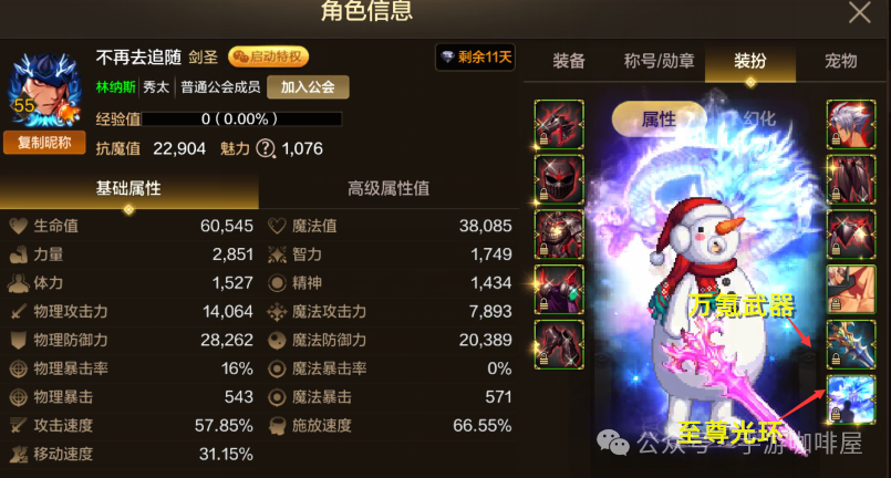 ①第一个小号剑魂,“混子”级别,才1.8万抗魔,完全拿不出手啊,只能去搬砖“布万加”,但拥有纯色天1,以及白金光环装扮;