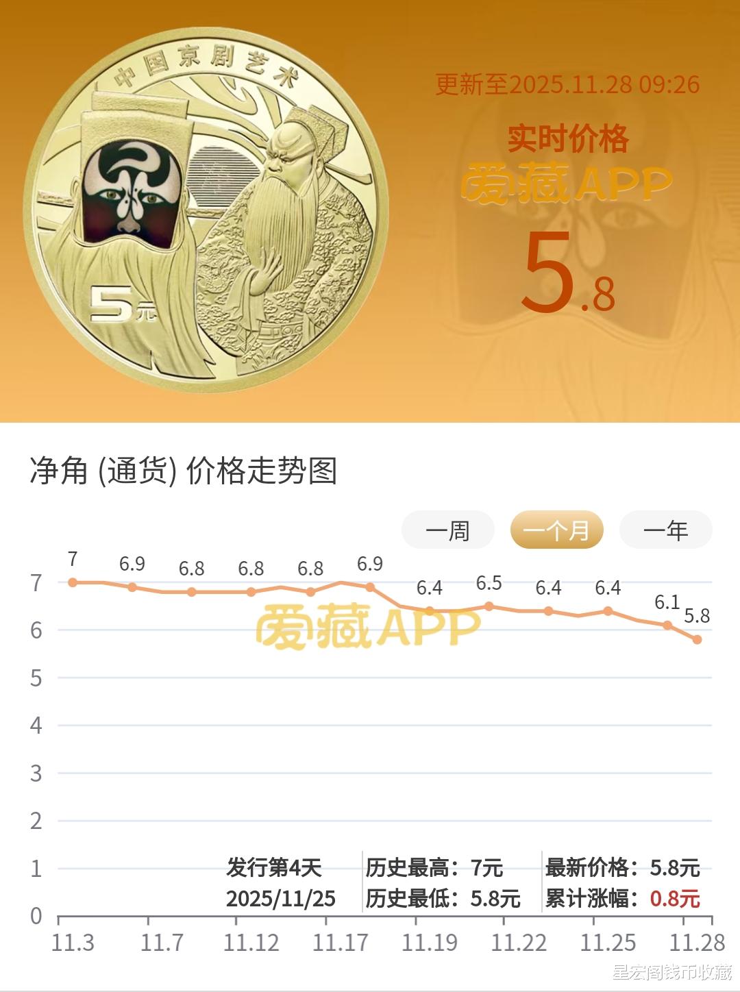 中国京剧艺术普通纪念币第3枚净角今天兑换也已经进入到第4天,这两天的市场行情其实变化也是比较大,自从在兑换第2天中国京剧艺术普通纪念币第3枚净角跌破6元以后,这两天市场行情貌似也出现了一些稳定的迹象。