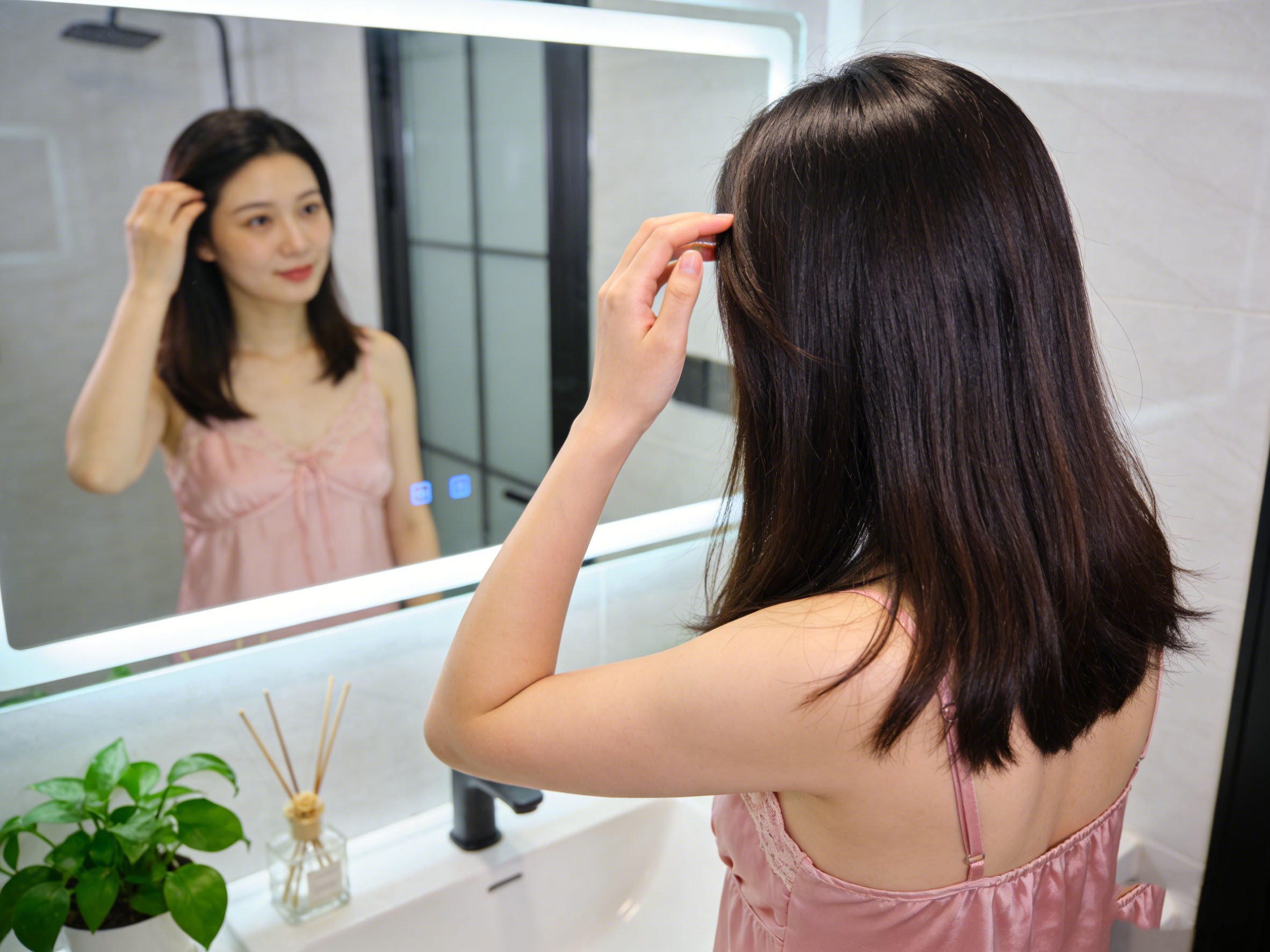 晚上沐浴,全屋供应无菌软水,沐浴后皮肤不再紧绷干燥,头发更加柔顺好梳理。