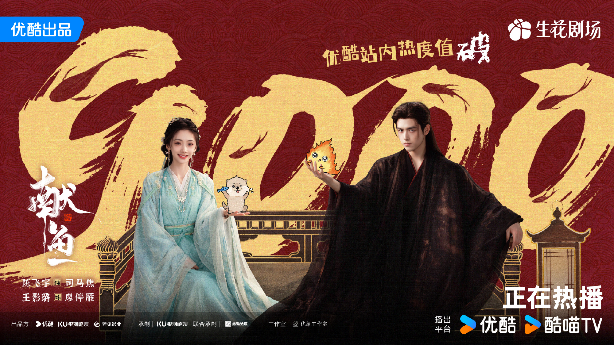 《献鱼》改编自扶华的小说《向师祖献上咸鱼》,在优酷上线后,优酷站内热度值破9000,还同步登陆奈飞,这排面属实不小,作为优酷生花剧场首部仙侠题材作品,《献鱼》也承载了不少期待。