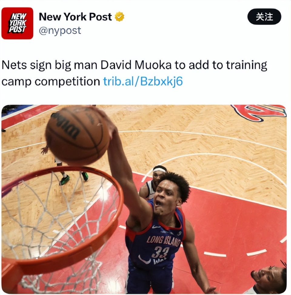 离开开拓者后,穆奥卡在公牛表现出色。整个赛季34场比赛,他能拿到11.6分、9.9篮板、2.6助攻和2.2盖帽,命中率高达65.1%。这一组效率数据为他再度叩响NBA大门奠定了基础。如今重返篮网,他得到的是一份一年部分保障合同,更可能是Exhibit 10类型,意味着要靠训练营表现去争取生存空间。