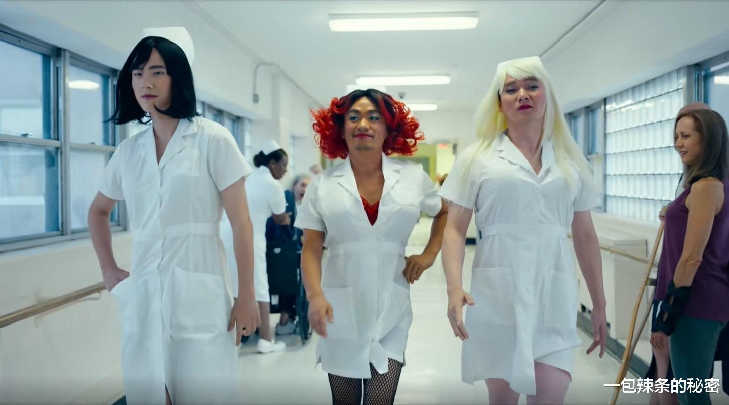 比如他们在医院扮女装,唐仁涂着大红唇、穿高跟鞋走路扭扭捏捏的,秦风憋笑的表情都快绷不住了,电影院里的笑声能掀翻屋顶。