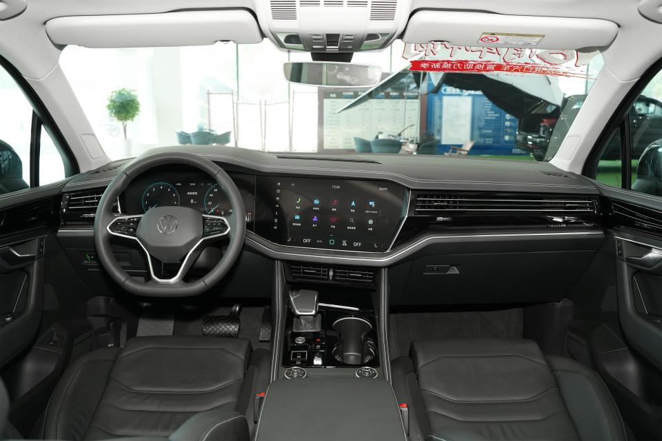 外观颜值是一个仁者见仁智者见智的问题,很多人觉得大众途锐的整体造型比较老气,有种大号途观L的感觉,但是仔细看上去,和途观L的区别还是很大的,整体造型更加威猛霸气,尤其是曜黑版车型,中网、铝合金轮毂都经过熏黑处理,远远看上去就像是一台黑武士,气势很足。